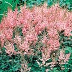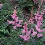 | Astilbe chinensis 'Finale' | part shade, massing, groups, 2 ft., salmon pink flowers, good ground cover, blooms July-August, Zone 5-8 | |