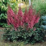 | Astilbe arendsii hybrid microphylla 'Red Sentinel' | part shade, massing, groups, 1-2 ft., ruby-red flowers w/ bronze foliage, mid bloomer, Zone 5-8 | |