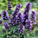 Compelling violet blue buds open from deepest purple stalks. Provides color and contrast in the difficult heat of summer. Foliage is a very fragrant licorice scent that is famous for historical use in candy. Will not tolerate wet soil. This variety will not self-sow as it is sterile. A feeding trough for hummingbirds and butterflies. Blooms summer to fall. Deer Resistant. Significant compactness compared to other Agastache varieties but makes a nice showing in the perennial bed or culinary garden design.